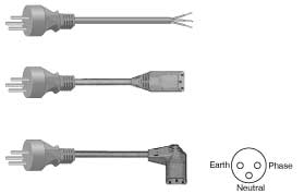The Israeli plug has three round contact pins. The earthing pin is arranged centrally offset and is accommodated by the power outlet.